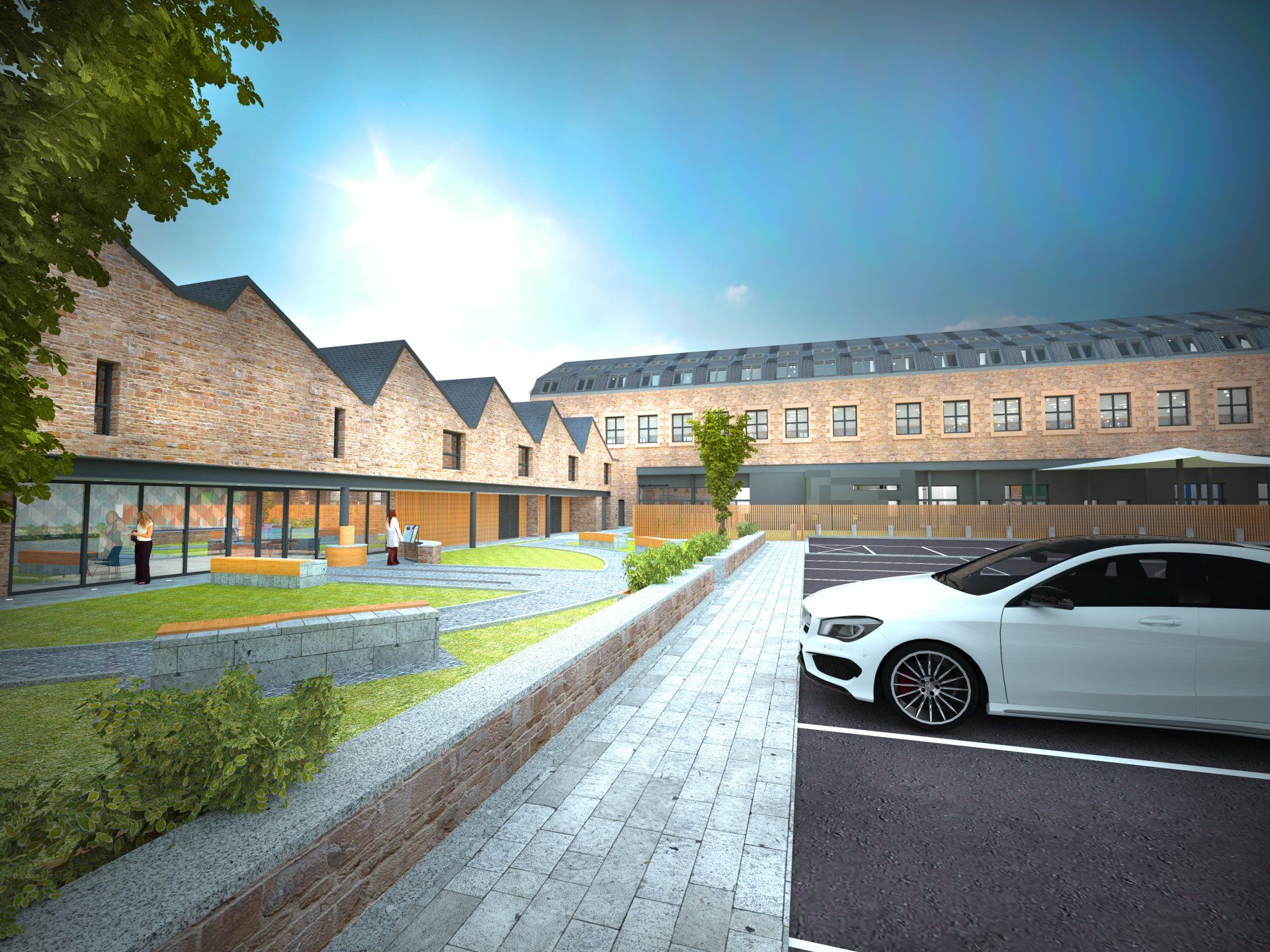 - On the upper floors, 32 x 2 and 3 bedroom apartments including loft apartments, with their own outdoor space, parking, external storage area, bicycle store and communal covered meeting/seating area.