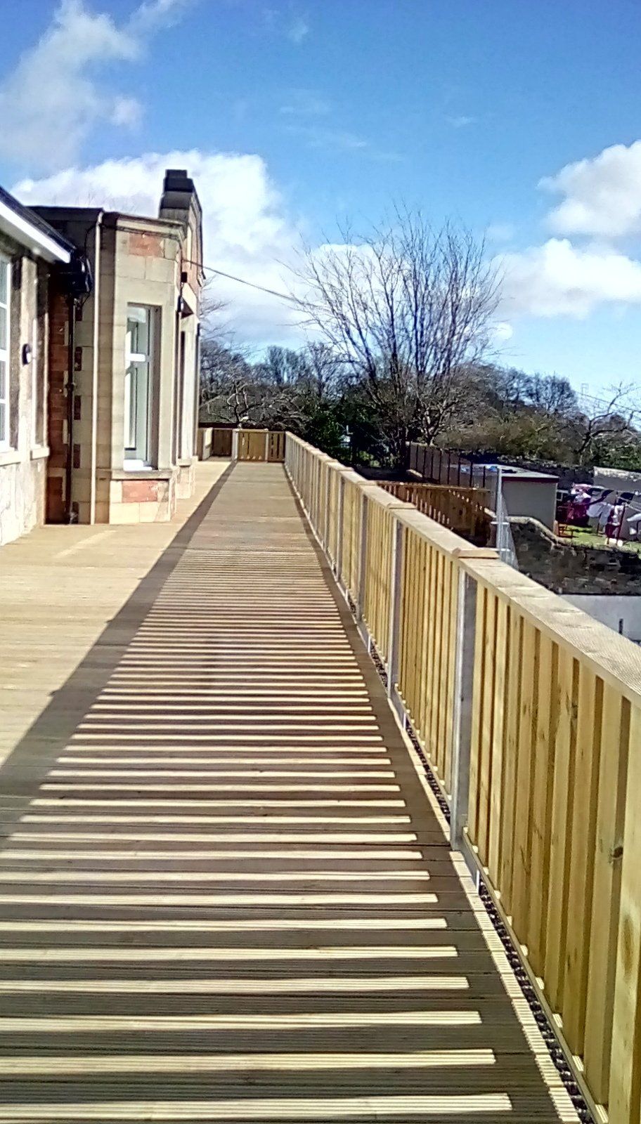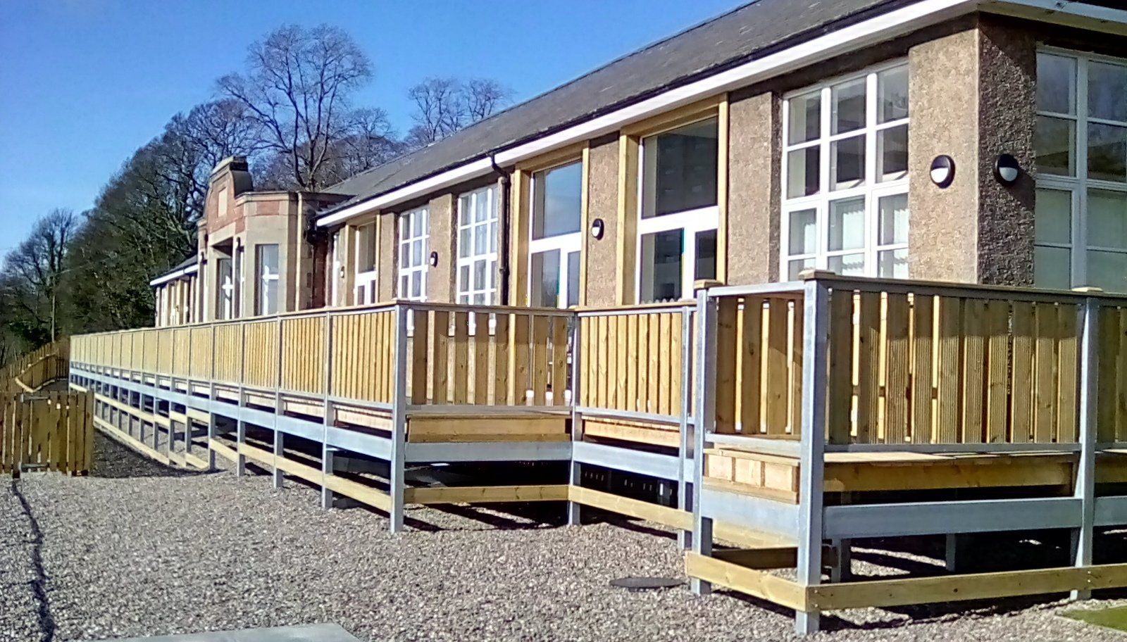 The project includes a unique timber balcony play area looking on to Dudhope park - accessible directly from all the classrooms. Each of the classrooms has fully glazed large format doors and vast windows enabling a bright, dynamic learning environment. Purpose built external play areas set around the large grounds allow for active outdoors play, and the contemporary new entrance area offers an attractive welcoming first impression, with formal square and high quality landscaping.